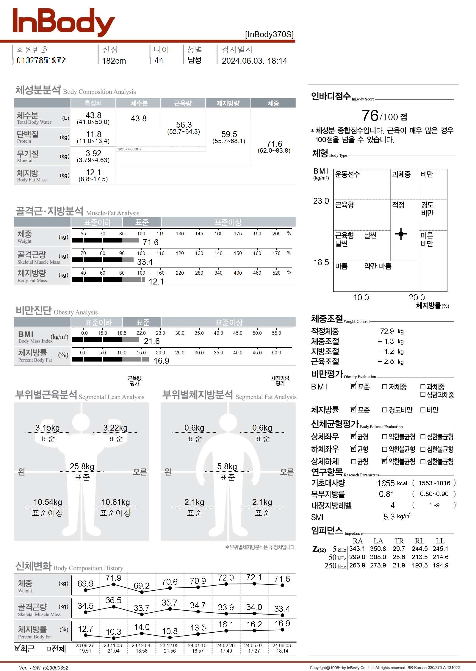 체지방률이 올라간 것 보고 운동을 더욱 열심히 해야겠다는 생각을 하게 되었습니다.