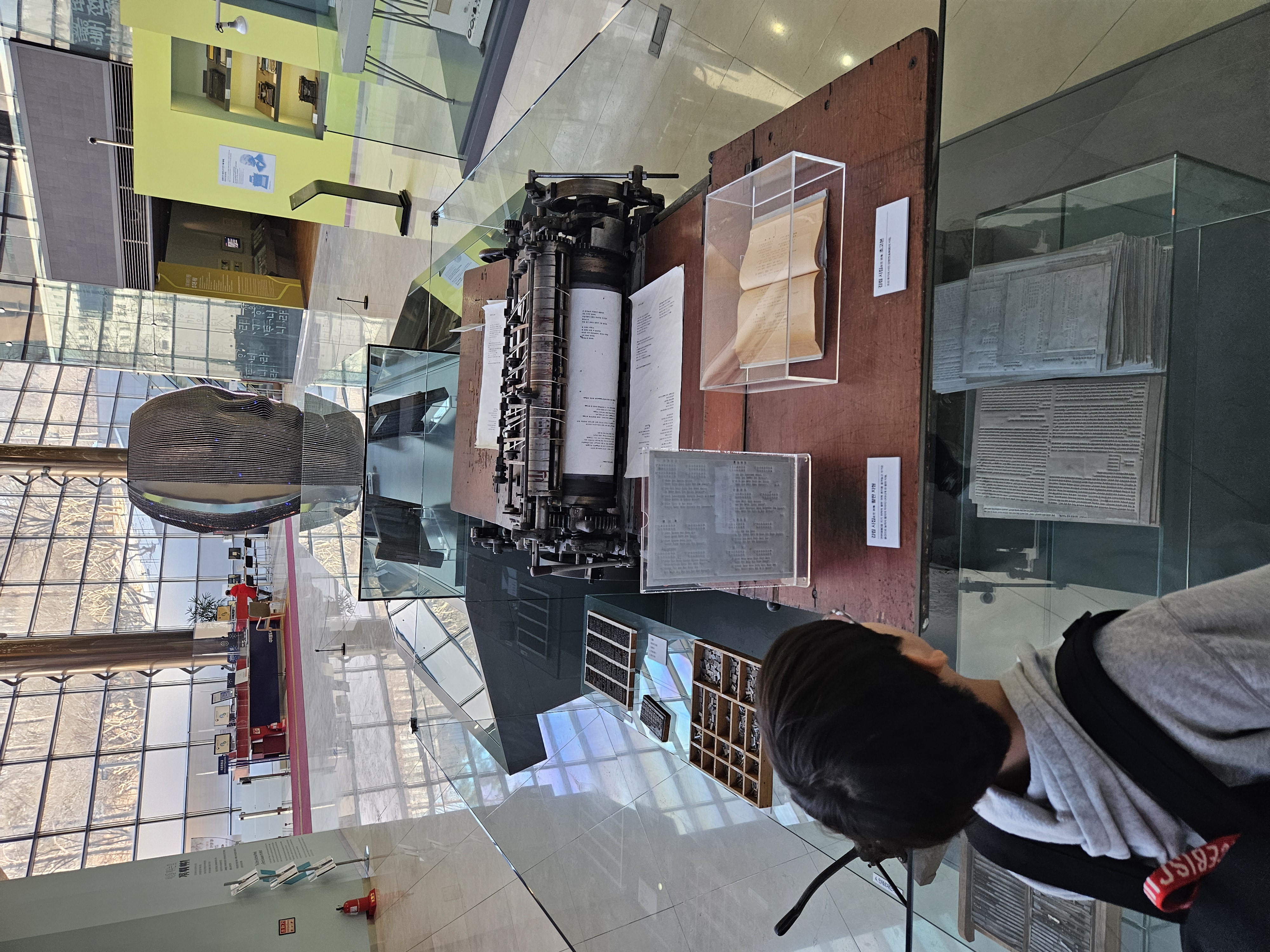 디지털도서관 바로 아래층에는 기록매체박물관이 자리 잡고 있어요. 이곳에서는 선사시대부터 현대까지의 기록 매체 역사와 발전 과정을 한눈에 볼 수 있는데요, 초기의 점토판부터 목판, 그리고 현대의 디지털 저장매체가 어떻게 인류와 함께 발전해 왔는지 흥미롭게 다가왔어요. 특히 직접 인쇄기, 카메라, 녹음기 같은 옛날 기기를 보고 만져보니 감탄스럽더라고요. 단순 관람을 넘어 체험형 콘텐츠들도 많이 있어서 특히 아이들이 너무 좋아했어요.