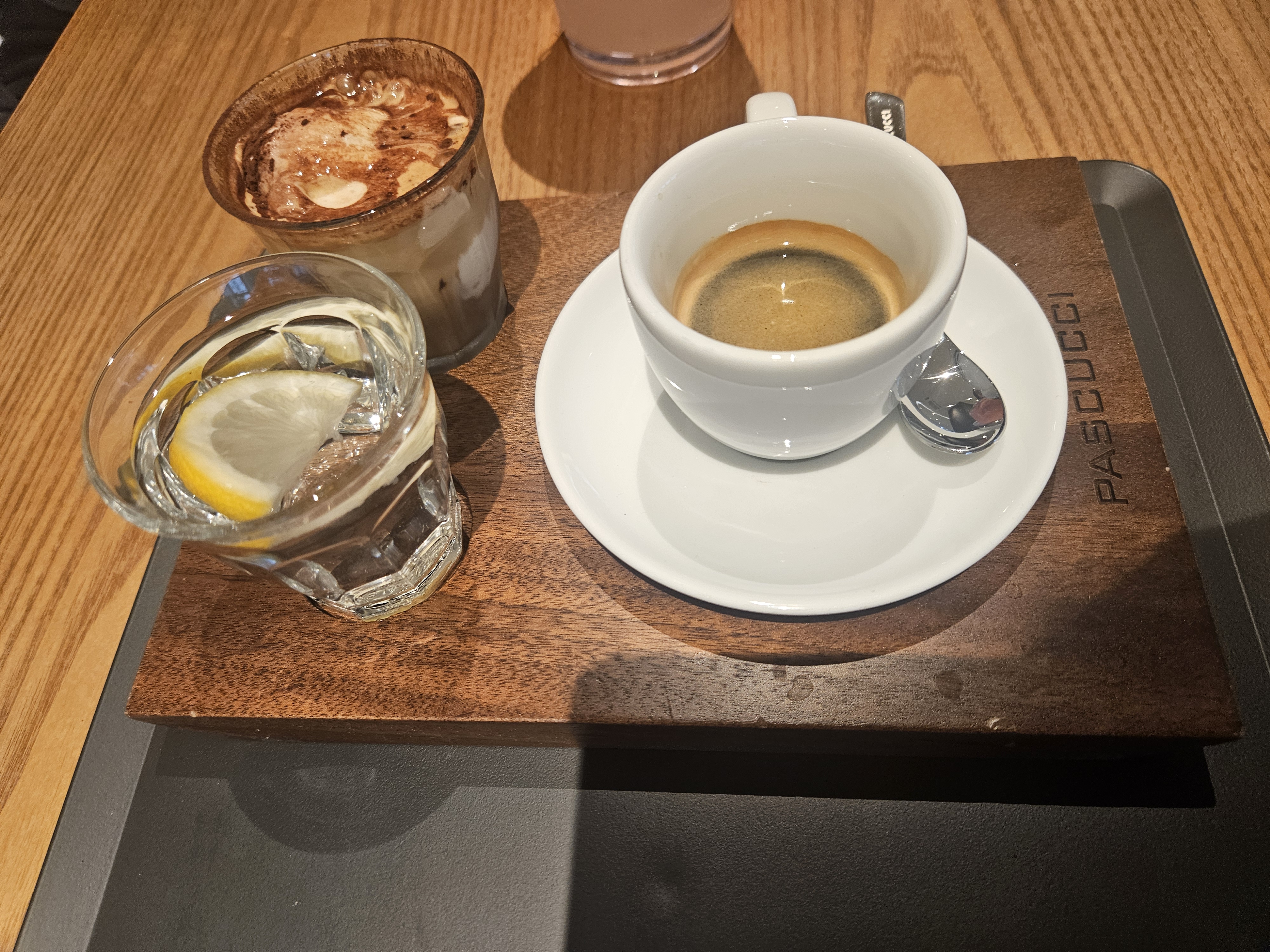 에스프레소에 설탕도 함께 들어 있어 거부감 없이 없었고, 레몬워터로 입가심 후 아포가토로 마무리!