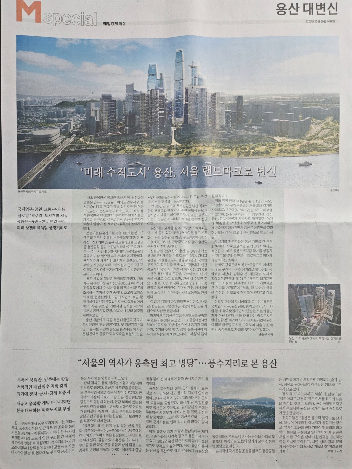 신문을 보다가 용산이 미래 수직도시가 된다는 기사가 4페이지로 기사가 나와 흥미롭게 봤습니다.