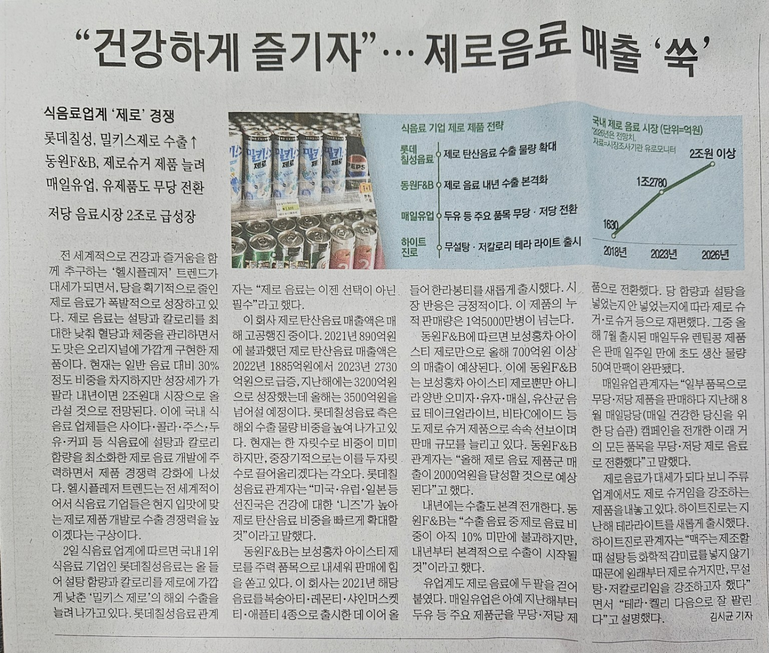 - 대형 식음료 회사들이 다양한 맛과 패키지, 컬래버레이션을 통해 제로 제품군을 꾸준히 확대하고 있습니다.