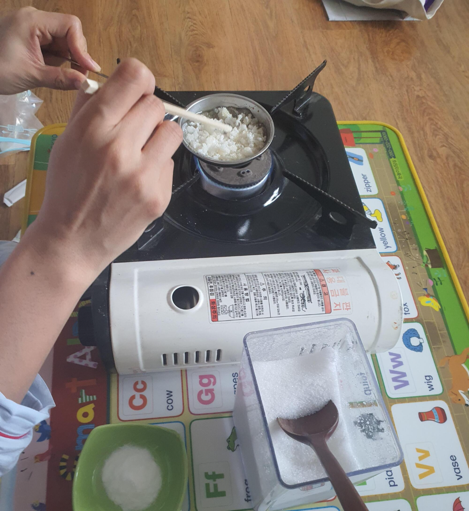 아들이 녹은 설탕이 부풀어 오르는 걸 보면 많이 신기해하면서 좋아하더라고요!!!