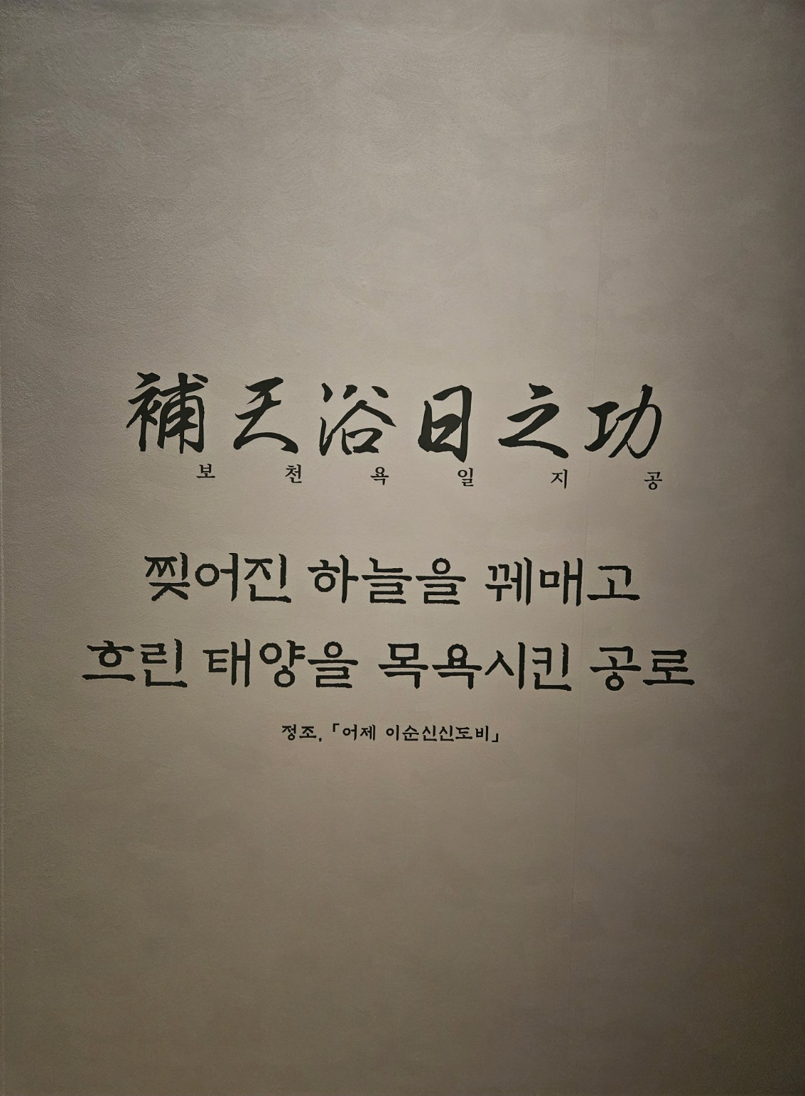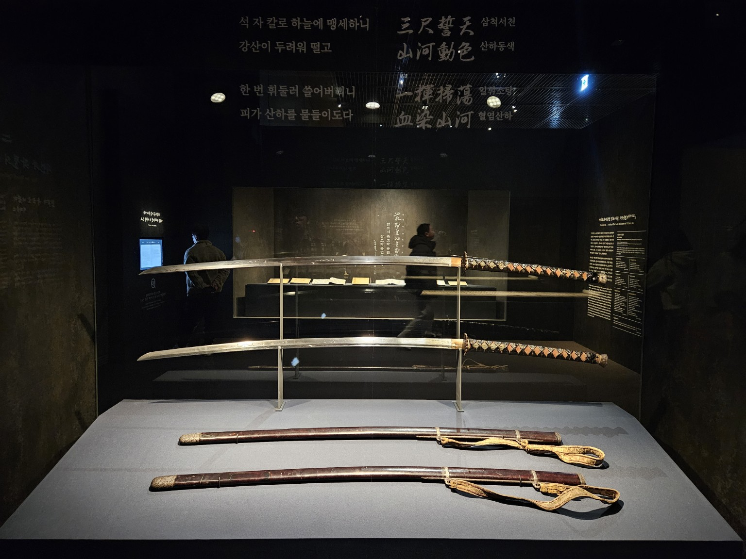 위쪽 벽에는 칼에 새겨진 시 구절이 함께 전시되어 있습니다.
