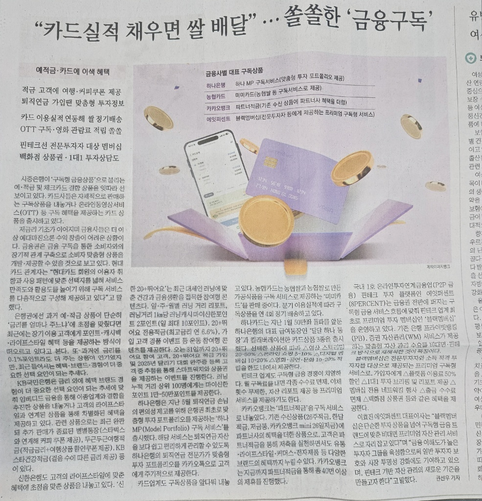 이른바 **'구독형 금융상품'**의 시대가 열린 건데요. 신문 기사를 통해 최신 트렌드와 알짜 혜택들을 정리해 봤습니다.