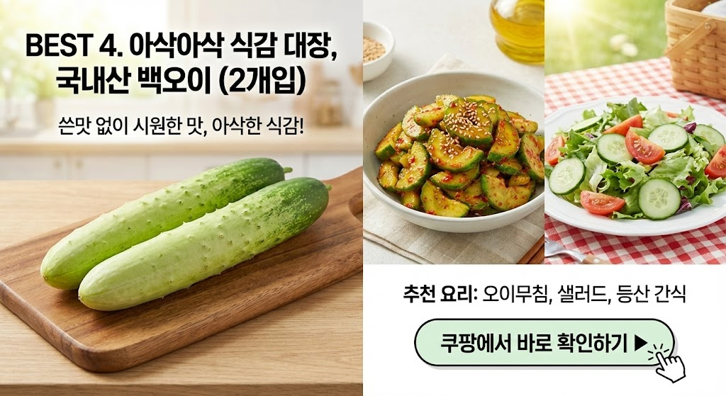 - 추천 요리: 오이무침, 샐러드, 등산 간식