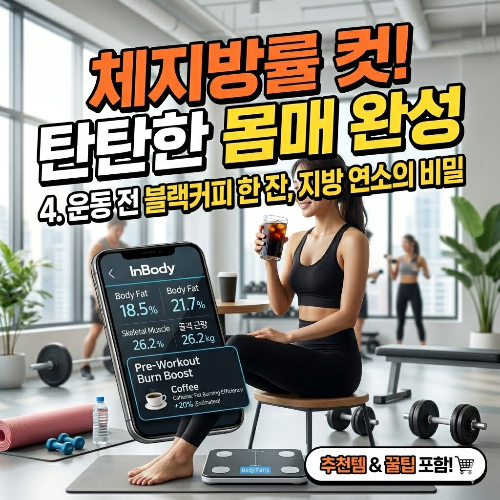 운동 전 마시는 블랙커피는 카페인 성분이 대사를 촉진해 지방 연소 효율을 높여줍니다.