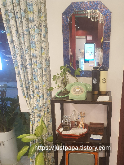레트로 감성의 인테리어와 소품들 그리고 잘은 모르겠지만 밀크티가 맛있어 보이더라고요!