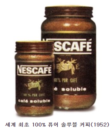 - 1952 : 100% 퓨어 솔루블 커피 개발 (스위스, 네슬레)