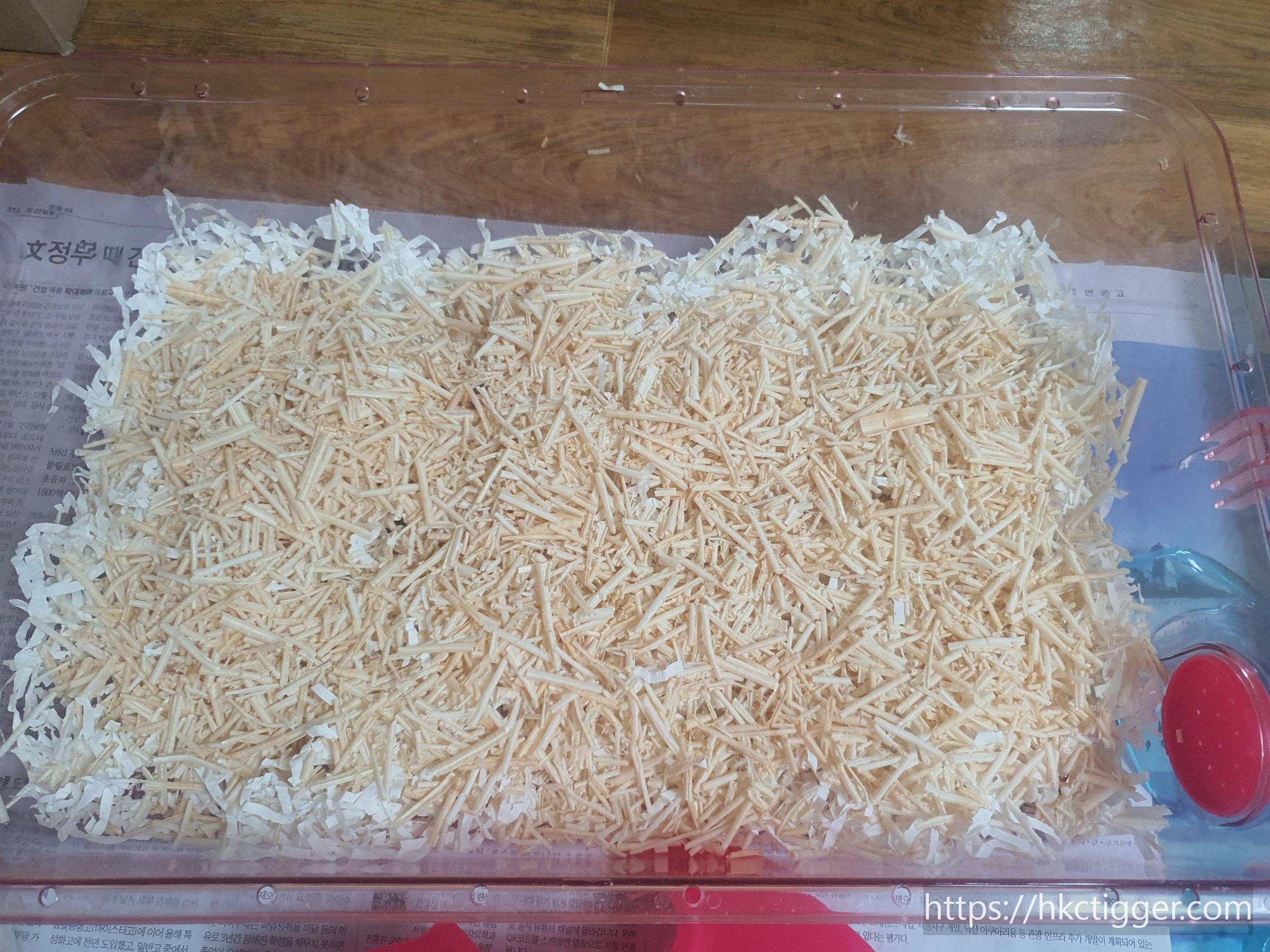햄토리들이 소변을 했을 때 바닥에 흡수가 잘되고 청소하기 쉽고 냄새가 좀 덜나는 효과가 있는 거 같습니다.