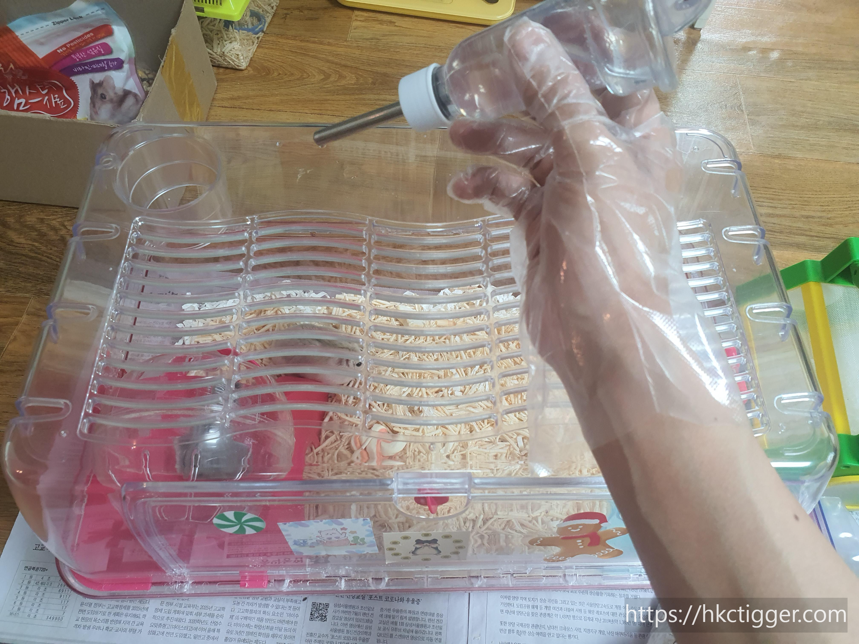 이제는 마지막으로 뚜껑을 덮어주고 햄토리들이 마실 물을 갈아줍니다.