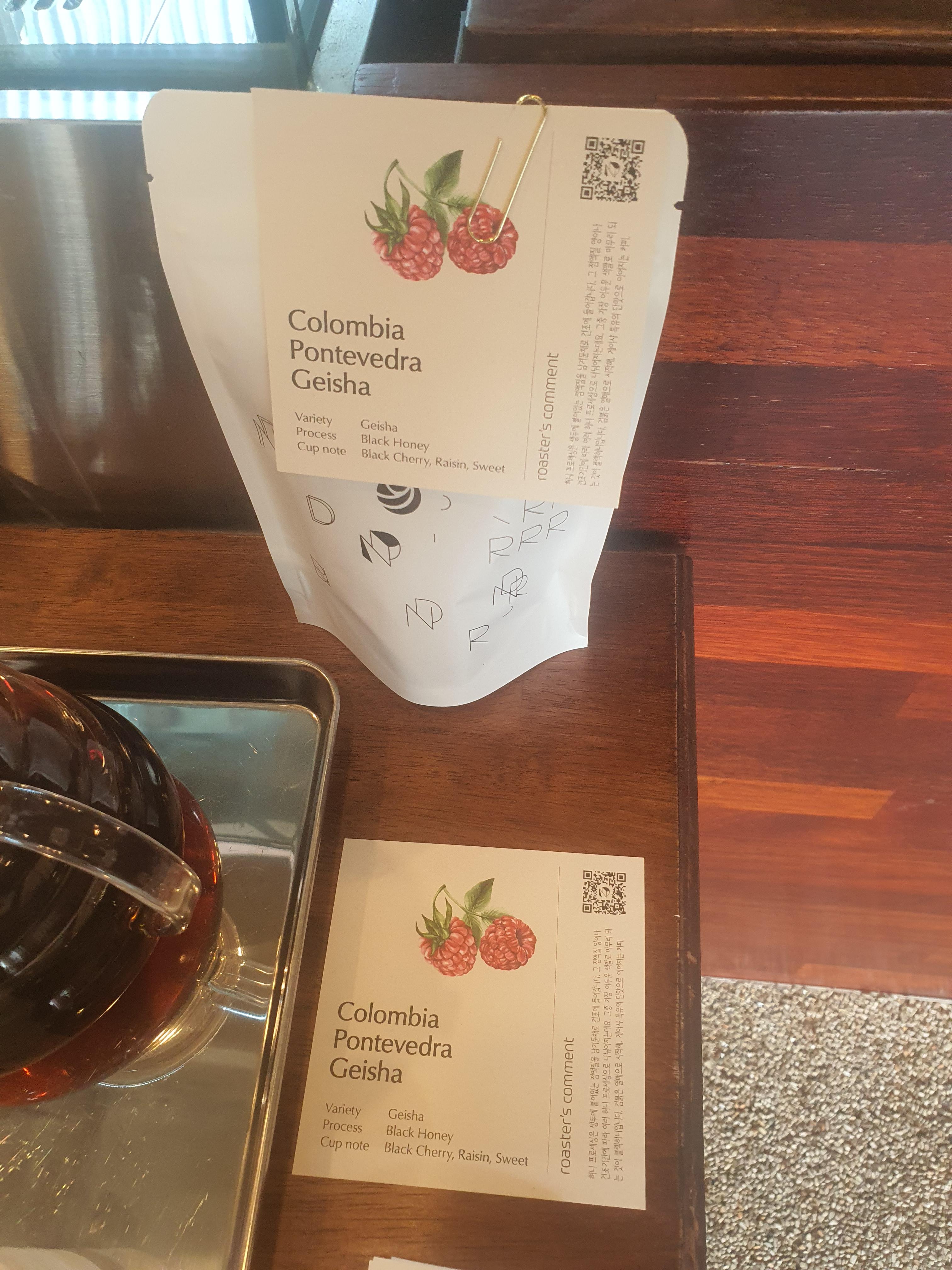 콜롬비아의 게이샤 품종 커피 그림과 같이 산딸기의 향미가 잘 올라오더라고요!
