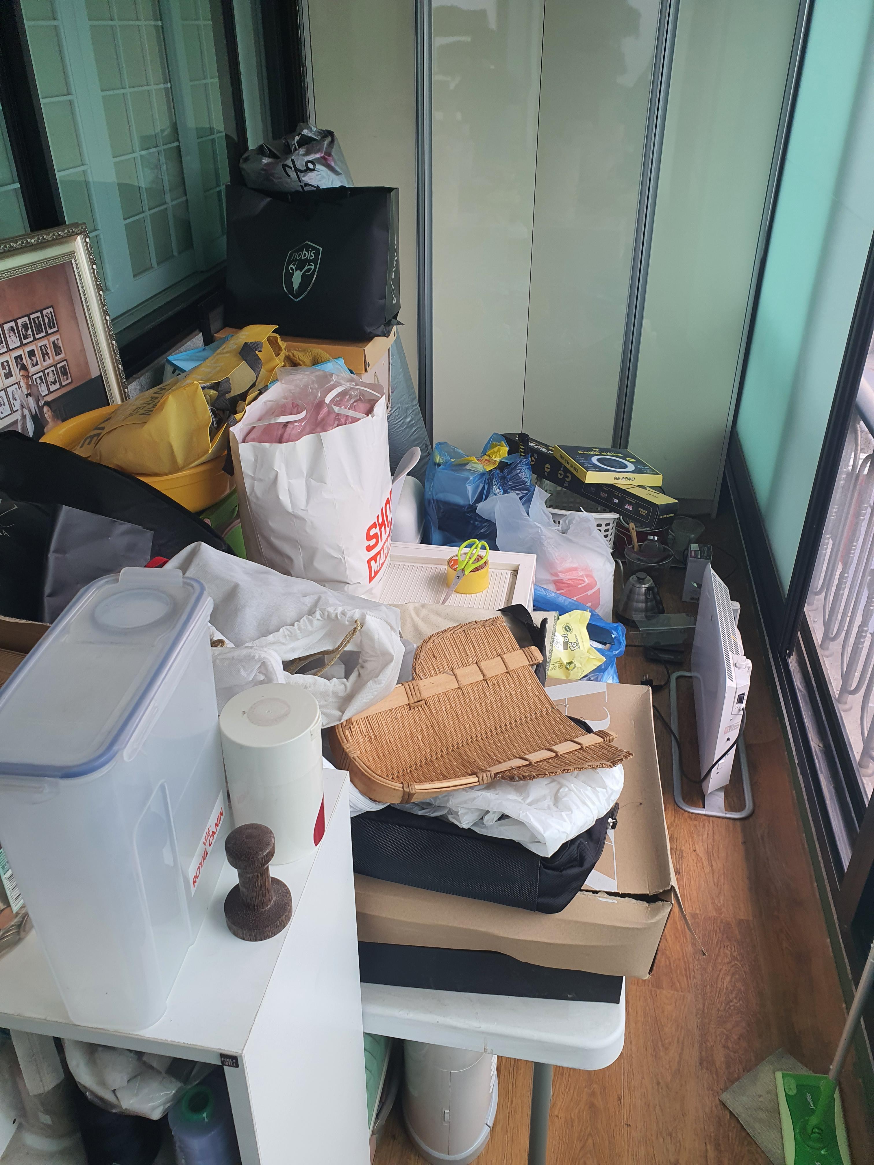 이런저런 물건들이 굴러다니는 모습이 너무 보기 안 좋아 베란다 청소를 하루종일 하였습니다.