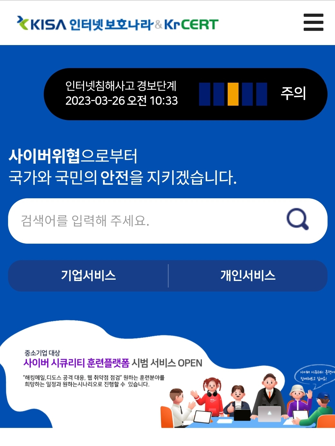 KISA 한국 인터넷 진흥원> 사업소개> 사이버 침해대응본부 > 침해 사고 예방 이런 서비스가 있었네요!?!