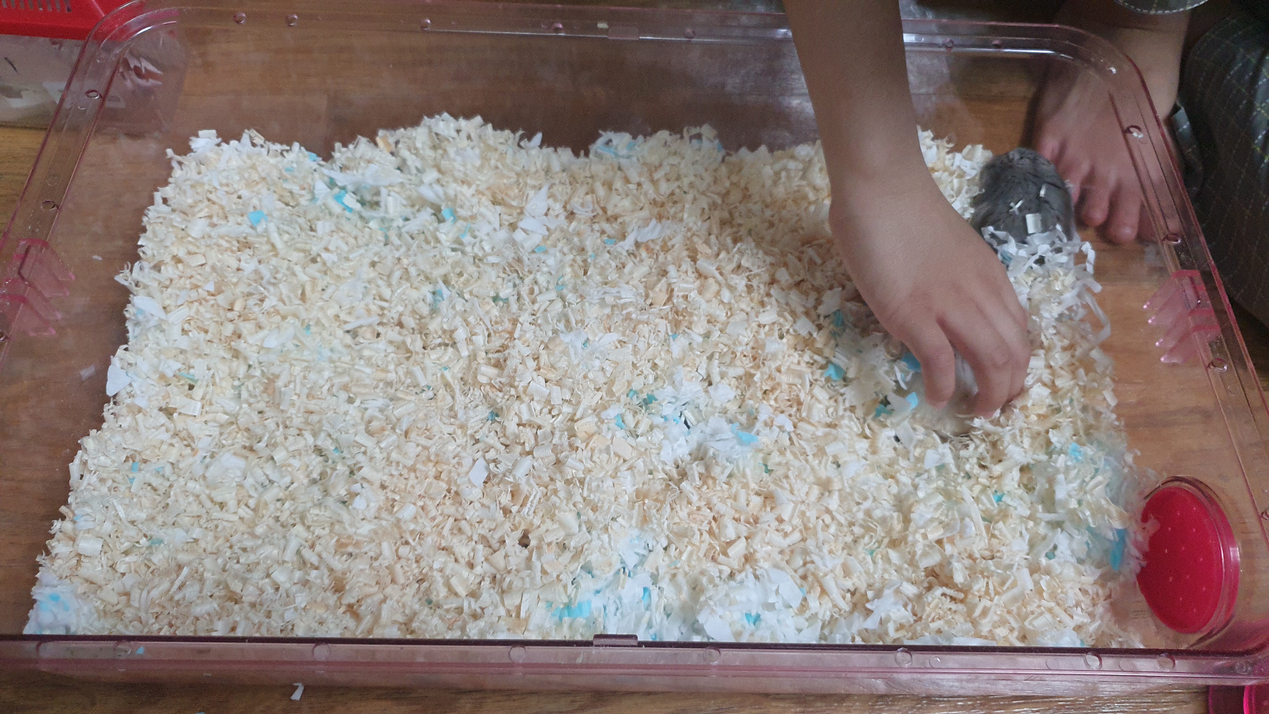 종이 바닥재를 바닥에 까는 이유는 햄토리들의 배설물들을 잘 흡수해 줘서 청소하기가 좋은 거 같습니다.