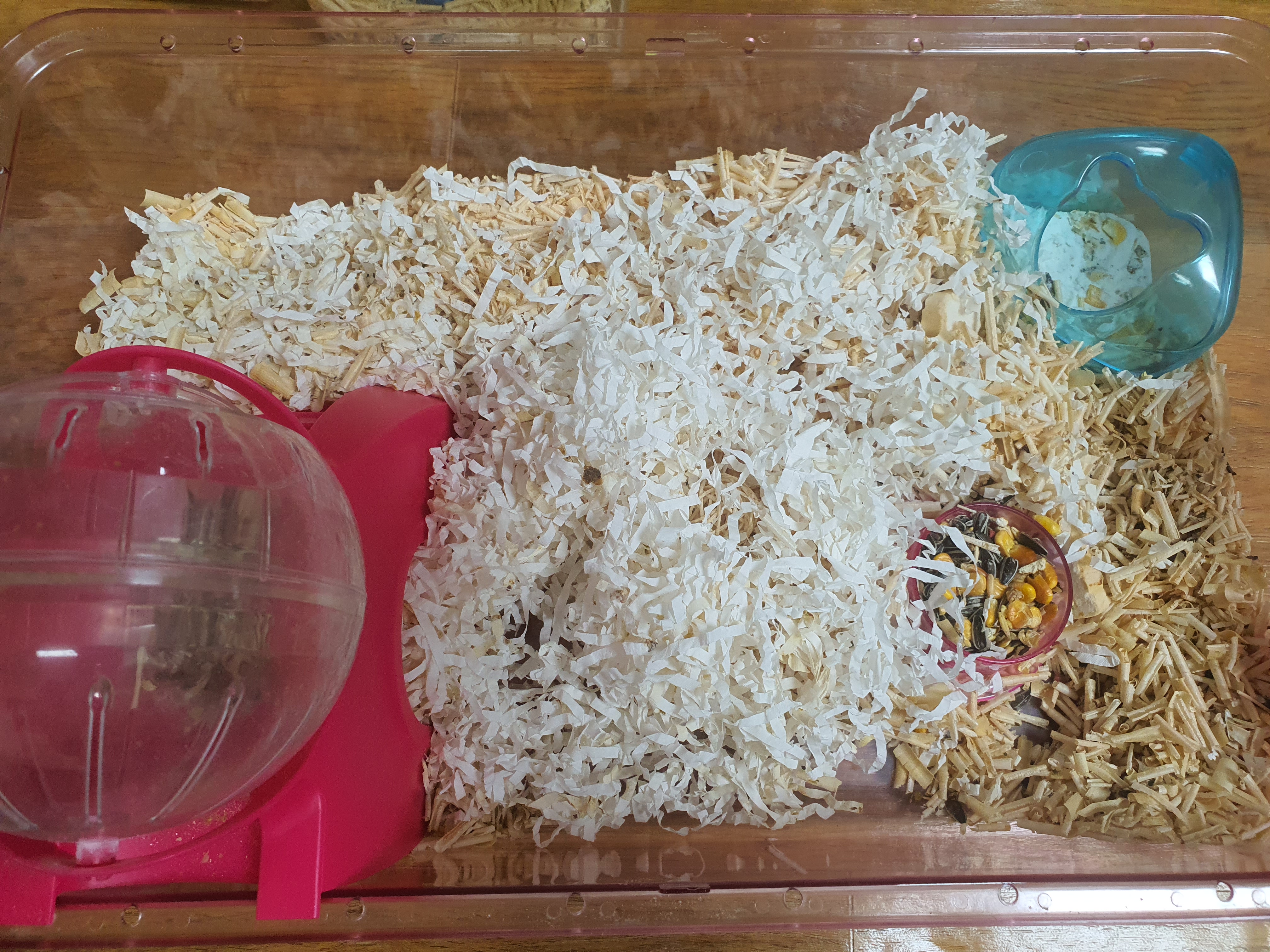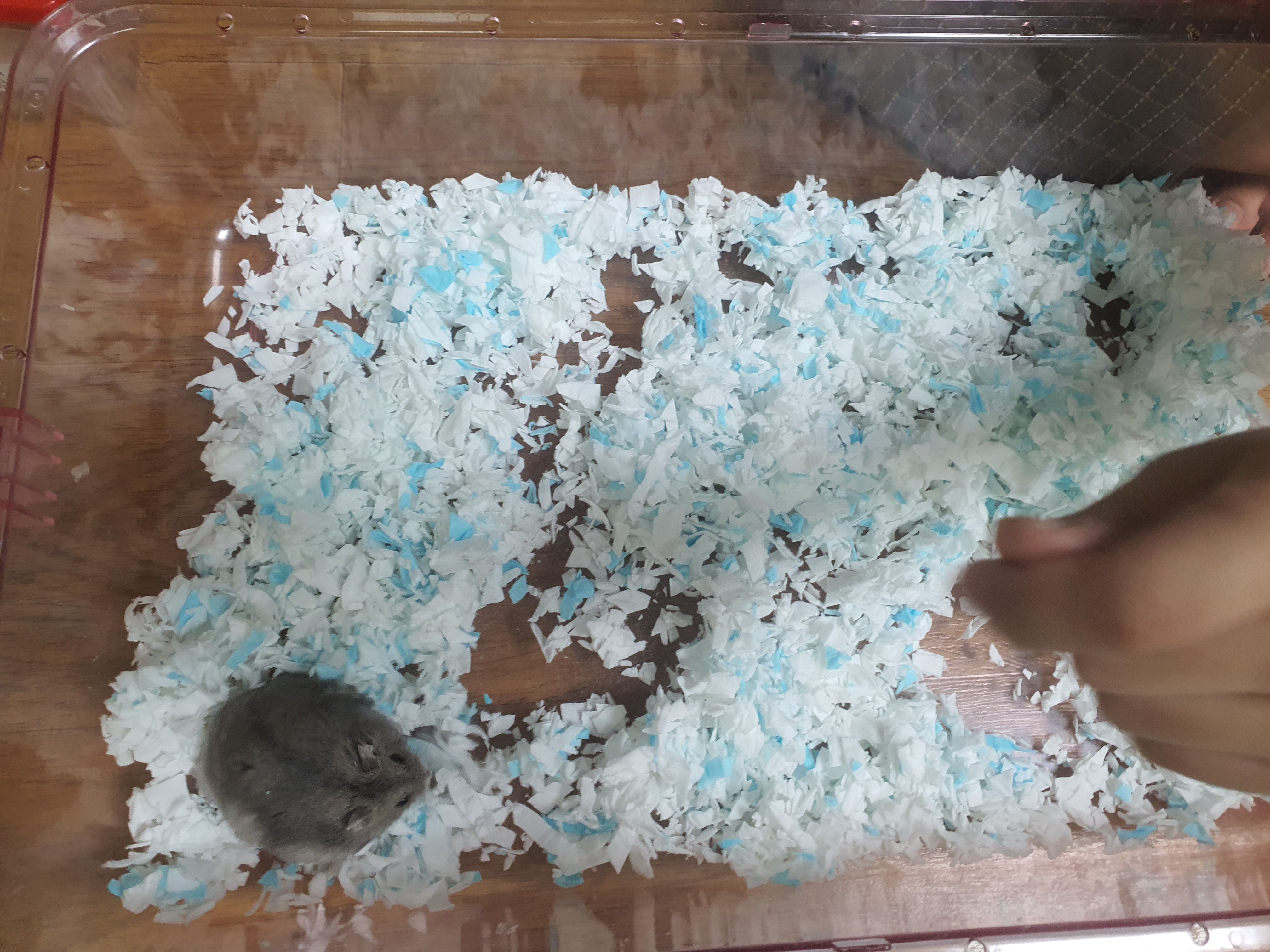 종이 바닥재를 바닥에 까는 이유는 햄토리들의 배설물들을 잘 흡수해 줘서 청소하기가 좋은 거 같습니다.