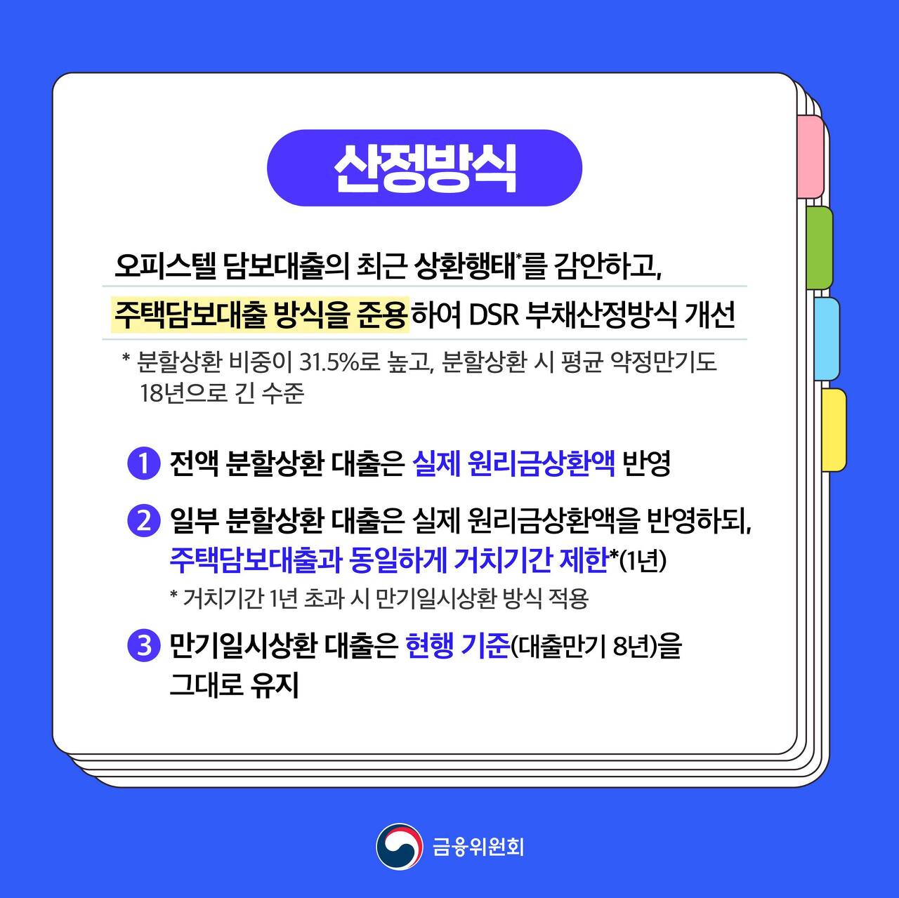 오피스텔 담보대출의 DSR 산정방식이 합리적으로 개선됩니다.
