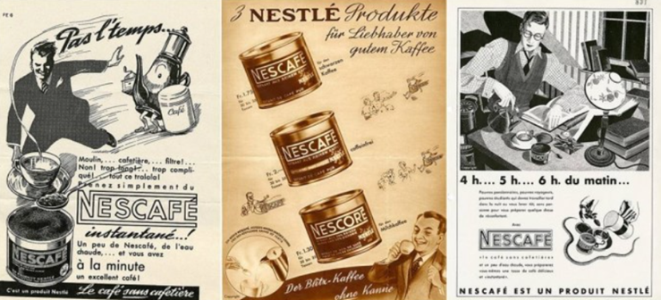 네슬레의 많은 직원들은 미국으로 전근을 갔고 네스카페는 전투식품으로 뽑히게 되면서 미군 1,200만 명이 전쟁에서 마시게 됨