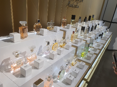 많은 향수들이 전시되어 있고, 향을 맡을 수 있습니다.